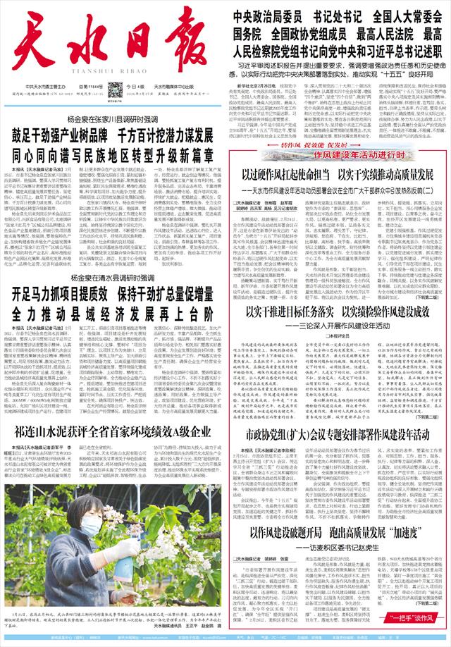 风清则气正,气正则心齐,心齐则事成。当前,天水大地处处涌动着转作风、提效能、抓落实、促发展的火热氛围。全市广大干部群众正以开局就是决战、起步就是冲刺的状态真抓实干,把作风建设成效体现在项目建设、产业发展、民生改善、营商环境优化等各方面,以优良作风凝聚磅礴力量,以实干担当开创发展新局,为奋力谱写天水在“十五五”新征程上的高质量发展新篇章作出新的更大贡献。