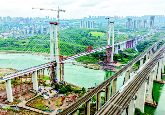 3月31日,由中铁大桥局承建的成渝中线高铁井口嘉陵江特大桥顺利合龙,标志着成渝中线高铁全线桥梁全部合龙,为按期通车奠定了坚实基础。