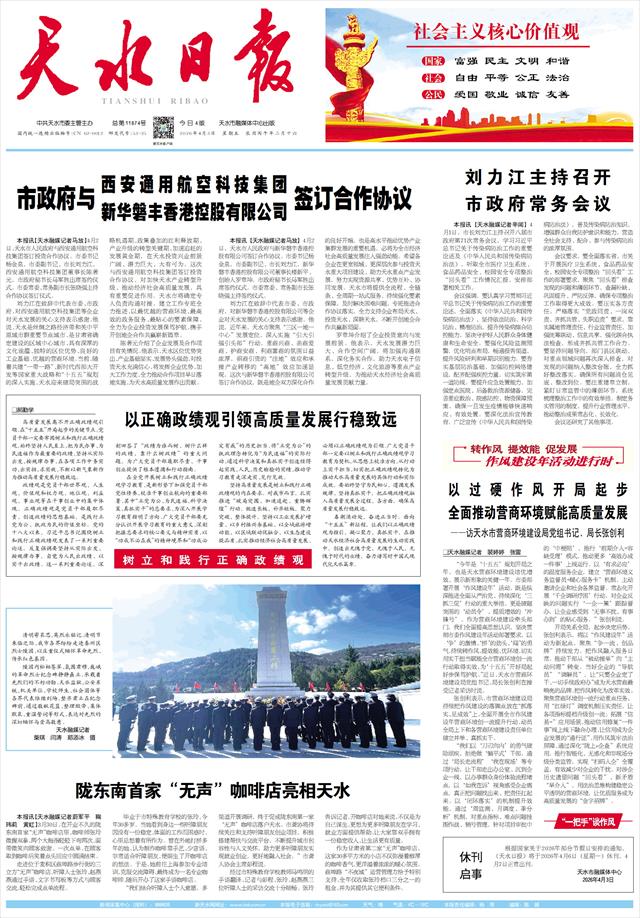 本报讯【天水融媒记者马放】4月2日,天水市人民政府与西安通用航空科技集团签订投资合作协议。市委书记杨金泉,市委副书记、市长刘力江,西安通用航空科技集团董事长陈著元,市政府秘书长马军胜出席签约仪式。市委常委、常务副市长张晓强主持合作协议签订仪式。