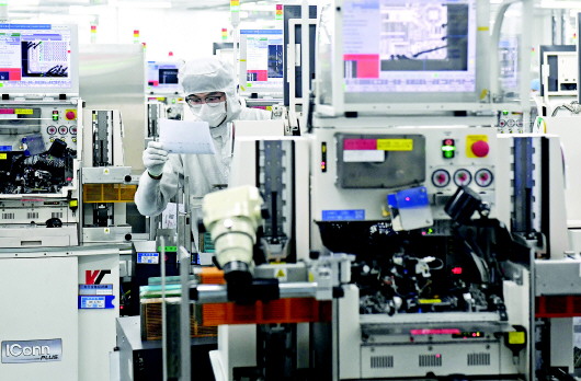 4月7日,天水华天电子集团股份有限公司车间内,工人们在集成电路封装线上加紧生产。今年以来,该集团积极开拓市场、加强新产品研发,不断提升企业综合实力和市场竞争力,以科技创新赋能高质量发展,为实现全年生产经营平稳运行打下良好基础。 天水融媒记者 孙镇 摄