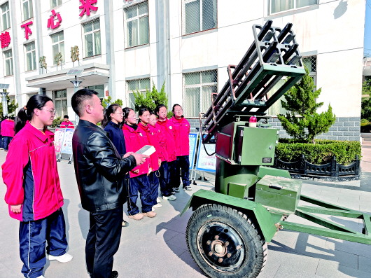 近日,武山县科协联合县地震局、县气象局在武山县渭北初中开展了一场融科学性、趣味性、知识性为一体的科普活动。活动中,增雨防雹火箭、地震应急知识展板吸引学生驻足观看;机器狗舞蹈、VR眼镜体验更是引来阵阵欢呼。师生共同参与拓扑游戏,在互动中感受科学魅力。这场融知识性与趣味性的活动,为春日校园播下了热爱科学的种子。图为工作人员在为同学们讲解增雨防雹火箭系统的相关知识。 天水融媒记者 罗双红 摄