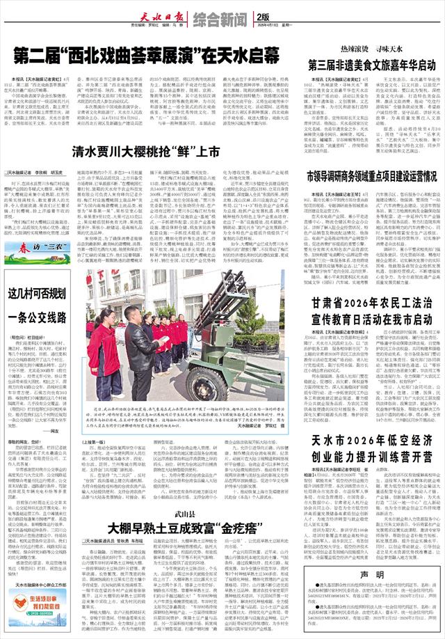 据悉,活动将持续至4月30日,围绕“寻味天水”“乐享天水”“艺韵天水”三大板块,集中展示非遗美食与特色文创,同步开展互动体验和文艺演出。