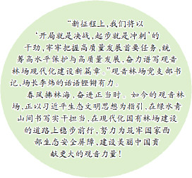 “新征程上,我们将以‘开局就是决战,起步就是冲刺’的干劲,牢牢把握高质量发展首要任务,统筹高水平保护与高质量发展,奋力谱写观音林场现代化建设新篇章。”观音林场党支部书记、场长李炜的话语铿锵有力。