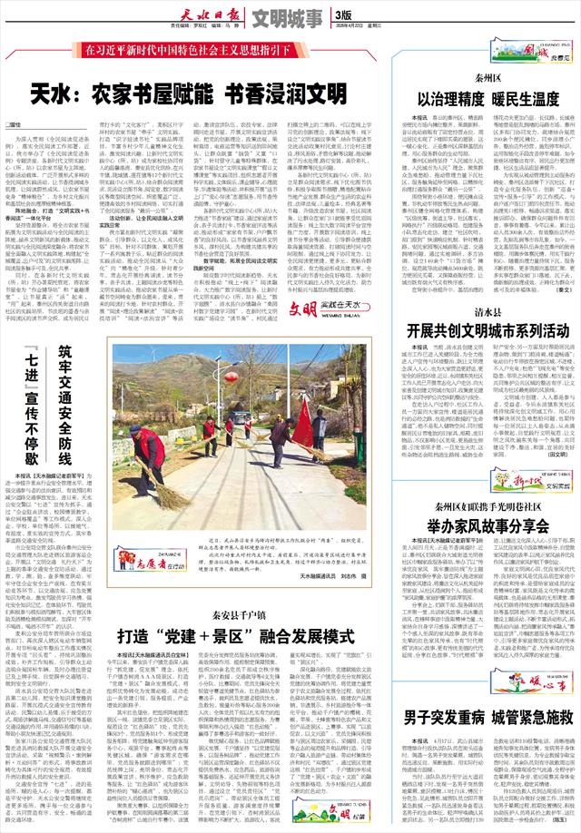 同时,在各新时代文明实践(所、站)开办暑期托管班,将农家书屋变为“作业辅导站”和“童趣课堂”,让书屋真正“活”起来、“用”起来。秦州区西关街道自由路社区的实践站里,书法班的墨香与亲子阅读区的读书声交织,成为居民日常打卡的“文化客厅”。麦积区什字坪村的农家书屋“牵手”文明实践,打造“识字娃读书社”实践品牌项目,丰富乡村少年儿童精神文化生活,激发阅读兴趣,让新时代文明实践中心(所、站)成为家校社协同育人的温馨港湾。秦安县优化供给,在兴丰镇、陇城镇、莲花镇等17个新时代文明实践中心(所、站),结合群众阅读需求,灵活设立图书角、阅览室、数字阅读区等微型阅读空间,织密覆盖广泛、便捷高效的乡村阅读网络,切实打通了全民阅读服务“最后一公里”。