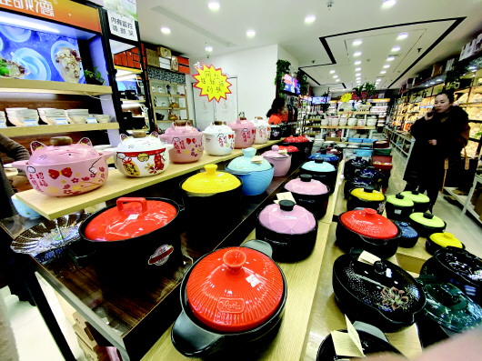 走进桥南小商品城的一家陶瓷馆里,摆放着的网红砂锅格外吸引消费者眼球。