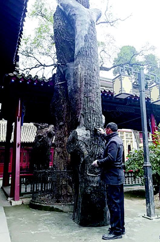 经过近一个月的保护修复,目前,纪信祠院内古树已恢复生机、重现原貌。