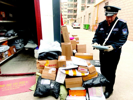在小区门口快递成堆