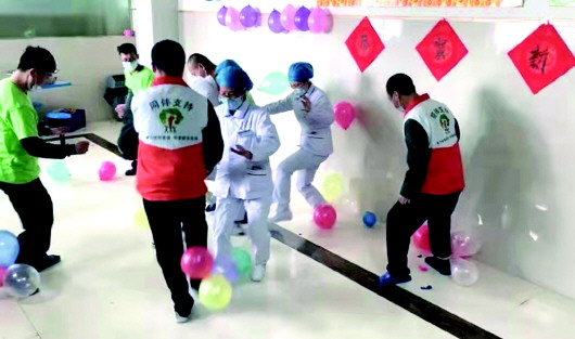 “我们虽然在医院住院没回家,但是医院组织大家包饺子、猜灯谜、踩气球、讲故事,热闹得就像在家里过年一样。感谢市三院的医护人员让我在这里过了一个特殊的热闹年。”说起今年春节在医院过的一个特殊年,市三院住院患者老刘感慨万分。