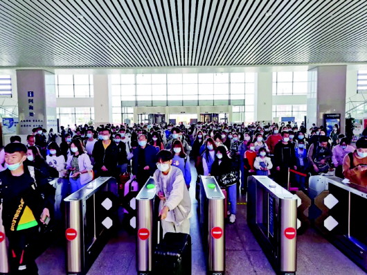 本报讯【新天水·天水晚报记者蔚军平】 “五一”假期首日,兰州铁路局天水车站持续迎来客流高峰,天水南站、秦安站等6个车站共发送旅客39875人次,全站单日发送旅客创今年新高,天水南站全天共计开行动车组列车128趟,发送旅客23713人次,创历史新高。
