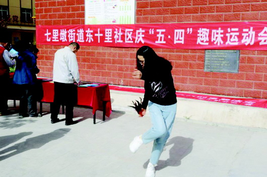 为弘扬“爱国、进步、民主、科学”的“五四”精神,秦州区七里墩街道办东十里社区团委日前组织开展了趣味运动会,在广大团员青年中营造积极向上、青春健康的氛围,弘扬以爱国主义为核心的伟大民族精神,牢记党的嘱托和团的宗旨,继承团的光荣传统,坚定永远跟党走的信念,增强作为共青团员的光荣感、责任感、使命感。 (刘月影)