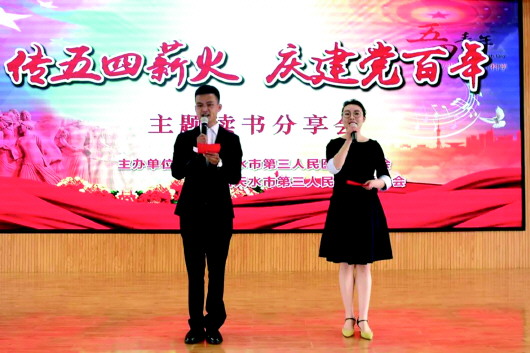 本报讯【新天水·天水晚报通讯员张双燕】为庆祝中国共产党成立100周年、纪念五四运动102周年,五一前夕,市三院开展了以“传五四薪火,庆建党百年”为主题的党史学习教育读书分享会。医院党政领导班子成员、全体党员、青年职工代表参加。