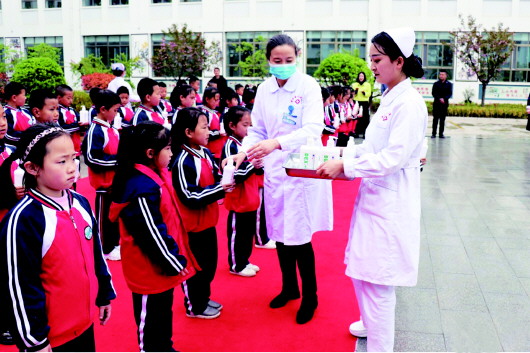 本报讯【新天水·天水晚报通讯员曹芳芳】为扎实开展“我为群众办实事”实践活动,4月27、28日,清水县人民医院行政科党支部党员干部分别到清水县充国小学和县第四幼儿园开展“健康知识进校园”活动,用实际行动为群众办实事,受到师生好评。