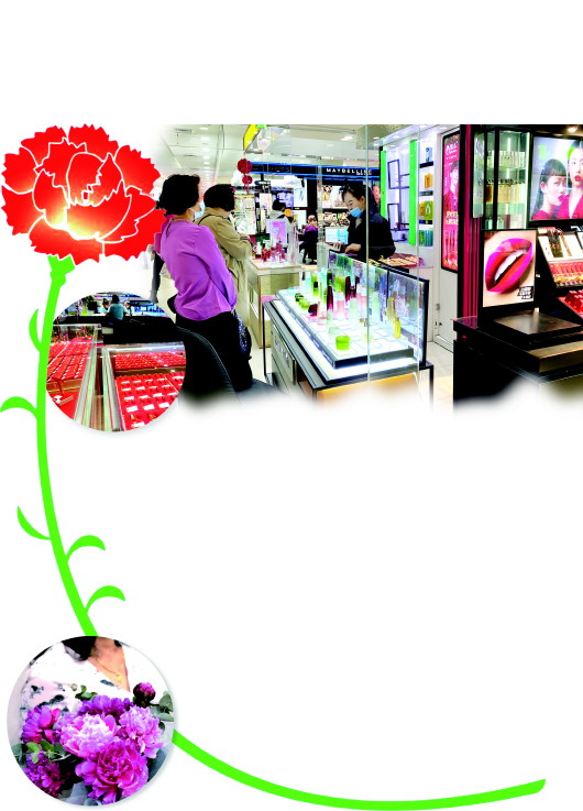 除了鲜花、蛋糕,化妆品也是母亲节当天的热销品。记者看到,在商场的各个品牌化妆品专柜,消费者络绎不绝。“我们前几天就在微信圈里发了‘送给妈妈的最好礼物’8.5折优惠活动,主要涉及的是化妆品套盒,价格从100多元到300元之间,吸引了不少新老顾客光临。”记者随机采访了一位刚花了352元选购了一套化妆品套盒的魏女士。她说:“女儿在上海工作,昨天给我发了一个大大的红包,说是她来不及买母亲节礼物,让我自己买一套平时用的化妆品套盒,这不,我今天约上了好友一起来买,刚和女儿通完视频。虽然没有收到女儿亲手送来的礼物,但是远在外地的女儿有这份孝心,我比收到什么礼物都开心。”