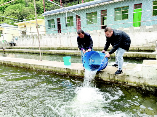 本报讯【新天水·天水晚报记者杨晓斌】5月11日,麦积区东岔镇桃花坪冷水鱼养殖基地、天水市渔业工作站的技术人员将几万尾从湖北引进的杂交鲟幼苗投放至养殖户的冷水鱼池塘中。当日,天水市渔业工作站从湖北引进的3.5万尾交鲟鱼苗全部运至我市,并在天水市渔业工作站技术人员的指导下投放至麦积区的几个冷水鱼养殖基地的池塘中。