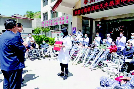 5月16日,我市举行第31次“全国助残日”系列活动暨“永远跟党走,奋进新征程”文艺演出活动。此次助残日的主题为“巩固残疾人脱贫成果,提高残疾人生活质量”。图为演出活动结束后,市领导来到天水大同康复医院、市残疾人康复中心医院等地进行慰问。
