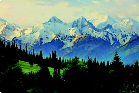 在林间步道曲折前行两小时后,终于来到了焉支山顶的百花池边。百花争奇斗艳,松柏掩映流水潺潺,层林深处的寂静和着布谷的鸣声由远而近。我眼前的景物本已是江山如画了,“祁连雪皑皑,焉支草茵茵”的诗意又在我心头涌动了。