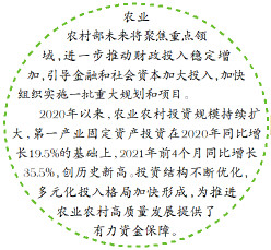 2020年以来,农业农村投资规模持续扩大,第一产业固定资产投资在2020年同比增长19.5%的基础上,2021年前4个月同比增长35.5%,创历史新高。投资结构不断优化,多元化投入格局加快形成,为推进农业农村高质量发展提供了有力资金保障。