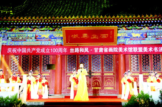 仲夏6月14日晚,民主路上华灯初放,古色古香的天水书画院内却已宾客云集、音乐环绕。当晚,来自全省各地的100余名艺术家沐着秦风,和着雅韵,共同参加了庆祝中国共产党成立100周年“丝路和风·翰墨秦州”甘肃省画院美术馆联盟艺术雅集活动。