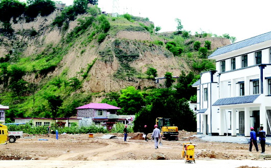 6月18日,记者在位于秦安县安伏镇沟门村的好地梁供水工程施工现场看到,形似一口大锅、可蓄水60万立方米的坝体已填筑完工。这处供水工程从七干渠末端叶堡供水管线取水,供水范围为陇城、五营、叶堡、安伏、莲花、王尹、云山、兴丰、刘坪、兴国和中山11镇,将惠及26万多人。