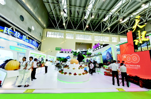 天水展馆划分在甘肃国际会展中心特色优势产业展区,面积198平方米,展区采用声、光、电、冰屏及LED电视墙等进行特装搭建,以直观新颖、简约大方、杜绝浪费为理念,突出产业、企业、产品和洽谈功能。布展方面突出展示天水市现代工业、农业科技、文化旅游方面产品和项目合作、贸易洽谈与产品推广功能。参展企业81家,展区主要产品包括:电子科技、装备制造、航天育种蔬菜、瓜果、浓缩苹果汁、绿色有机产品、沙棘汁饮料制品、蜂蜜、杂粮、花椒、辣椒、清真食品、雕漆、陶艺、棉麻制品、鸳鸯玉、竹编等系列产品80多个大类、600多个品种。