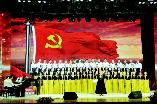 7月7日晚,天水市工会庆祝中国共产党成立100周年合唱音乐会在秦州大剧院举行。天水市职工合唱团和多位歌唱家、演奏家合唱、独唱的《唱支山歌给党听》《黄河大合唱》《十送红军》《映山红》《我爱你中国》《灯火里的中国》《怀念战友》等红色歌曲,追忆百年风华,致敬永恒经典。