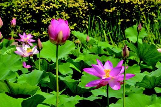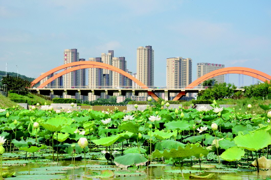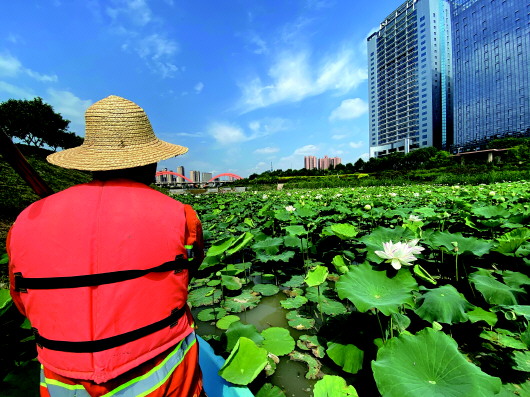 应晓文告诉记者,目前,秦州区藉河风情线生态景观长廊湿地体验区共有2个荷花池和5个睡莲池,其中,1个荷花池建在船型广场旁边的五色花岛。与荷花池相比,每个睡莲池的面积较小,不过,睡莲自身繁衍能力很强,今年的睡莲池明显就比去年大了许多。荷花池需要人工培育,今年藉河风情线办公室工作人员将重点放在了2个荷花池上,1月份便开始组织人员对荷花池的藕带进行人工栽培,扩大荷花池栽种面积。现在,展现在众人眼前的荷花池在去年的基础上增大了300~400平方米。每年荷花的观赏期为7月至9月,眼下,许多荷花还处于含苞欲放状态,欢迎广大市民来藉河风情线打卡。