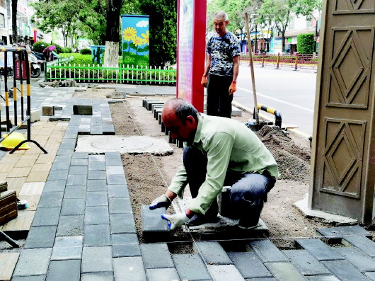 7月16日,秦州区解放路幼儿园附近人行道,工人们正忙着铺设新地砖。据了解,因经过车辆碾压、雨水冲刷侵蚀等原因,城区部分人行道路面出现不同程度的损坏,对行人通行存在一定安全隐患。为进一步改善市民出行环境,完善城市功能,市政部门在人行道提升改造工程在设计上充分考虑安全性、实用性和环保性,在方便群众出行的同时,进一步美化了道路环境。