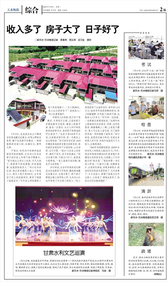 7月16日晚,庆祝建党百年华诞、再普水利壮美篇章——热烈庆祝中国共产党成立100周年甘肃水利文艺巡演在天水宾馆会议中心演出。此次文艺汇演活动,内容丰富,形式多样,通过诗歌朗诵、合唱、独唱、舞蹈等方式,讴歌了党的光辉业绩,唱响了共产党好、伟大祖国好的主旋律,传递了颂党恩、听党话、跟党走的强大正能量。 新天水·天水晚报记者李旺旺 马放 摄