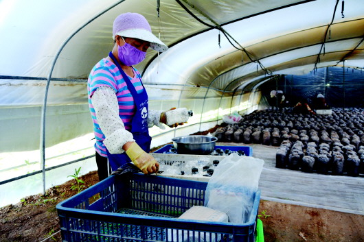 7月20日,在甘谷县安远镇食用菌种植基地内,几位工人正在往菌棒里点菌种。据该基地负责人介绍,点完菌种以后20天左右蘑菇就能长出来,然后再有两三天时间便能上市销售。