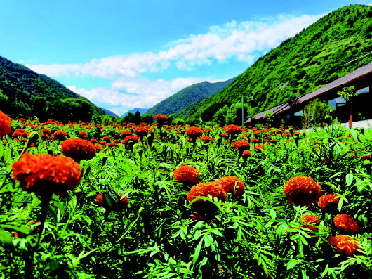 在武山县龙台镇上河峪凉爽的世外桃源,正盛开着漫天的万寿菊。驱车前往龙台,一路有凉风习习,云海深处是美丽绝伦的马年村,伸手就可以触摸到天边的云彩。茅草屋、砖瓦房、怀旧的乡村集市,让来这里的人回味起童年。