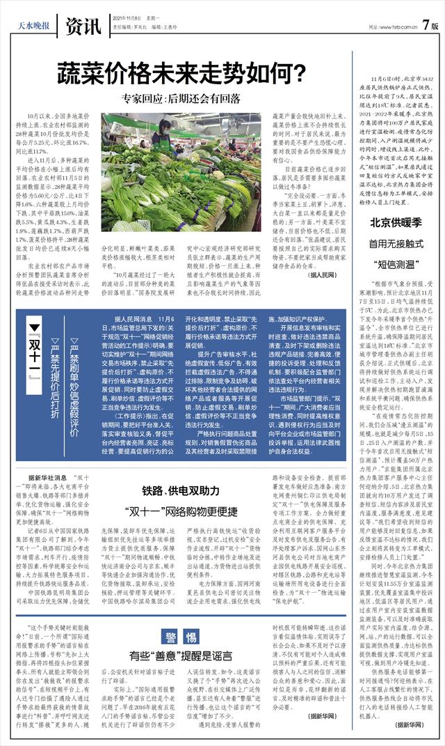 “完全没必要。一方面,冬季当家菜土豆、胡萝卜、洋葱、大白菜一直以来都是量足价稳的;另一方面,叶类菜不宜储存,当前价格也不低,后期还会有回落。”张晶建议,居民要按照自己的实际需求购买物资,不要把家当成帮助商家储存食品的仓库。