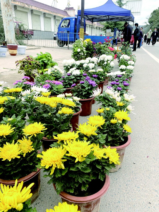 集市上,五颜六色的各种花卉吸引了许多赶集人的目光,杜鹃花、三角梅、菊花……有的一盆10元,有的20元,价格十分亲民。在多个水果摊上,柿子、黄元帅和富士苹果格外惹人,摊主们说,这些果子都是一大早从自家园子里摘的,非常新鲜。