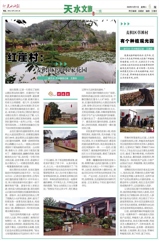 红崖村: 麦积山下的农家花园□新天水·天水晚报记者 王惠玲 ◥◥◥