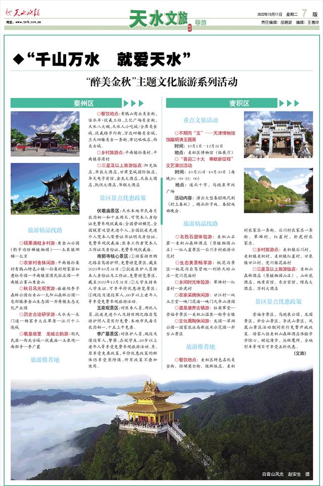 ◆“千山万水 就爱天水” “醉美金秋”主题文化旅游系列活动 麦积区