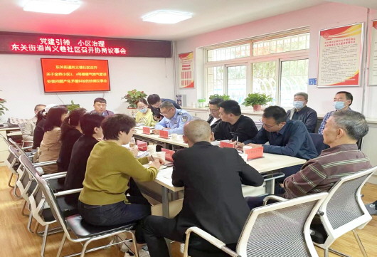 10月10日下午,秦州区东关街道尚义巷社区在居民议事厅就“金桥小区3、4号楼燃气暖气管道安装问题产生矛盾纠纷”召开民主协商议事会。会议邀请市区人大代表、政协委员、区住建局、区综治中心、街道司法所、街道综治中心、东关派出所、老旧小区改造施工单位、燃气公司、法律顾问、社区两委班子成员以及金桥3号、4号楼业主代表共25人参会。