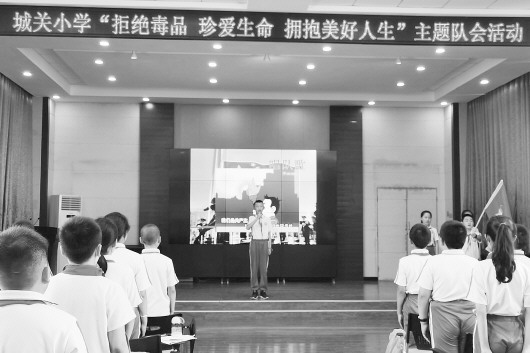 为进一步普及毒品预防知识,加强学生对毒品危害的认识,增强自我保护意识,营造良好的成长环境,6月22日下午,2020年国际禁毒日来临之际,在武山县城关小学党支部统筹安排下,由德育室牵头,少先大队部组织开展了“拒绝毒品 珍爱生命 拥抱美好人生”主题队会活动。