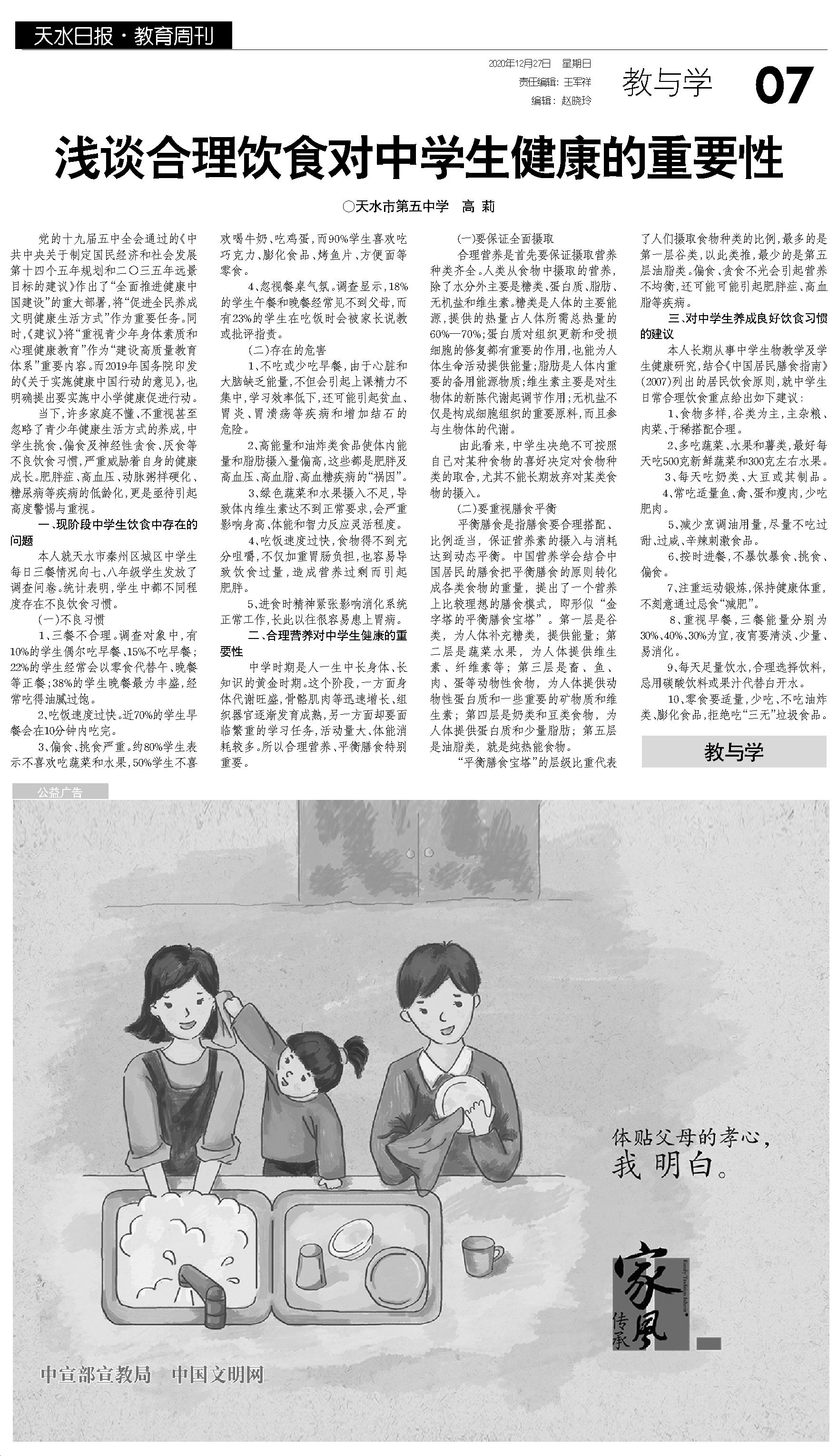 三、对中学生养成良好饮食习惯的建议