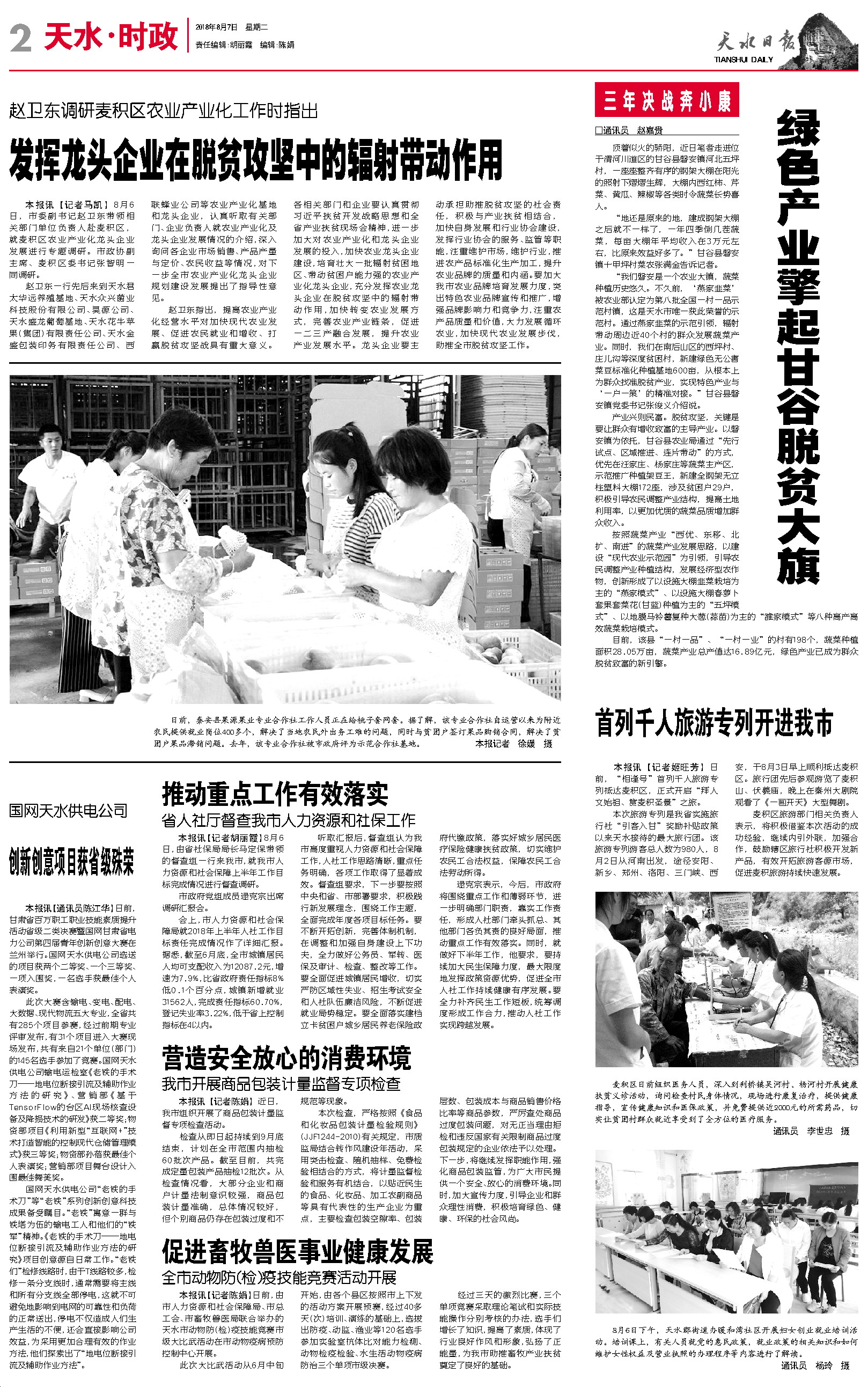 □通讯员 赵嘉贵 顶着似火的骄阳,近日笔者走进位于渭河川道区的甘谷县磐安镇河北五坪村,一座座整齐有序的钢架大棚在阳光的照射下熠熠生辉,大棚内西红柿、芹菜、黄瓜、辣椒等各类时令蔬菜长势喜人。 “地还是原来的地,建成钢架大棚之后就不一样了,一年四季倒几茬蔬菜,每亩大棚年平均收入在3万元左右,比原来效益好多了。”甘谷县磐安镇十甲坪村菜农张满金告诉记者。 “我们磐安是一个农业大镇,蔬菜种植历史悠久。不久前,‘燕家韭菜’被农业部认定为第八批全国一村一品示范村镇,这是天水市唯一获此荣誉的示范村。通过燕家韭菜的示范引领,辐射带动周边近40个村的群众发展蔬菜产业。同时,我们在南后山区的西坪村、庄儿沟等深度贫困村,新建绿色无公害菜豆标准化种植基地600亩,从根本上为群众找准脱贫产业,实现特色产业与‘一户一策’的精准对接。”甘谷县磐安镇党委书记张俊义介绍说。 产业兴则民富。脱贫攻坚,关键是要让群众有增收致富的主导产业。以磐安镇为依托,甘谷县农业局通过“先行试点、区域推进、连片带动”的方式,优先在汪家庄、杨家庄等蔬菜主产区,示范推广种植架豆王,新建全钢架无立柱塑料大棚172座,涉及贫困户29户,积极引导农民调整产业结构,提高土地利用率,以更加优质的蔬菜品质增加群众收入。 按照蔬菜产业“西优、东移、北扩、南进”的蔬菜产业发展思路,以建设“现代农业示范园”为引领,引导农民调整产业种植结构,发展经济型农作物,创新形成了以设施大棚韭菜栽培为主的“燕家模式”、以设施大棚春萝卜套果套菜花(甘蓝)种植为主的“五坪模式”、以地膜马铃薯复种大葱(蒜苗)为主的“雒家模式”等八种高产高效蔬菜栽培模式。 目前,该县“一村一品”、“一村一业”的村有198个,蔬菜种植面积28.05万亩,蔬菜产业总产值达16.89亿元,绿色产业已成为群众脱贫致富的新引擎。 |