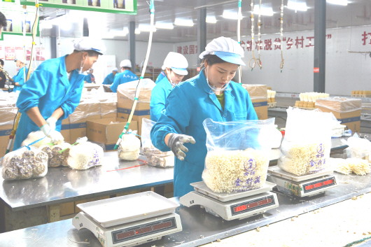 7月30日,天水众兴菌业科技股份有限公司工人正在包装金针菇。该公司创建扶贫车间,开发就业岗位569个,将农民转化为产业工人。目前,公司吸纳建档立卡贫困劳动力143人就业,2014年以来已帮扶92户贫困户脱贫。
