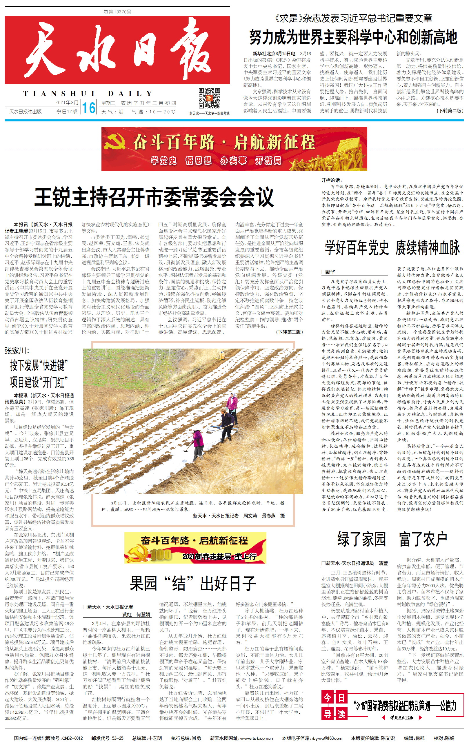 新闻 时间:2021年03月16日 来源:天水日报