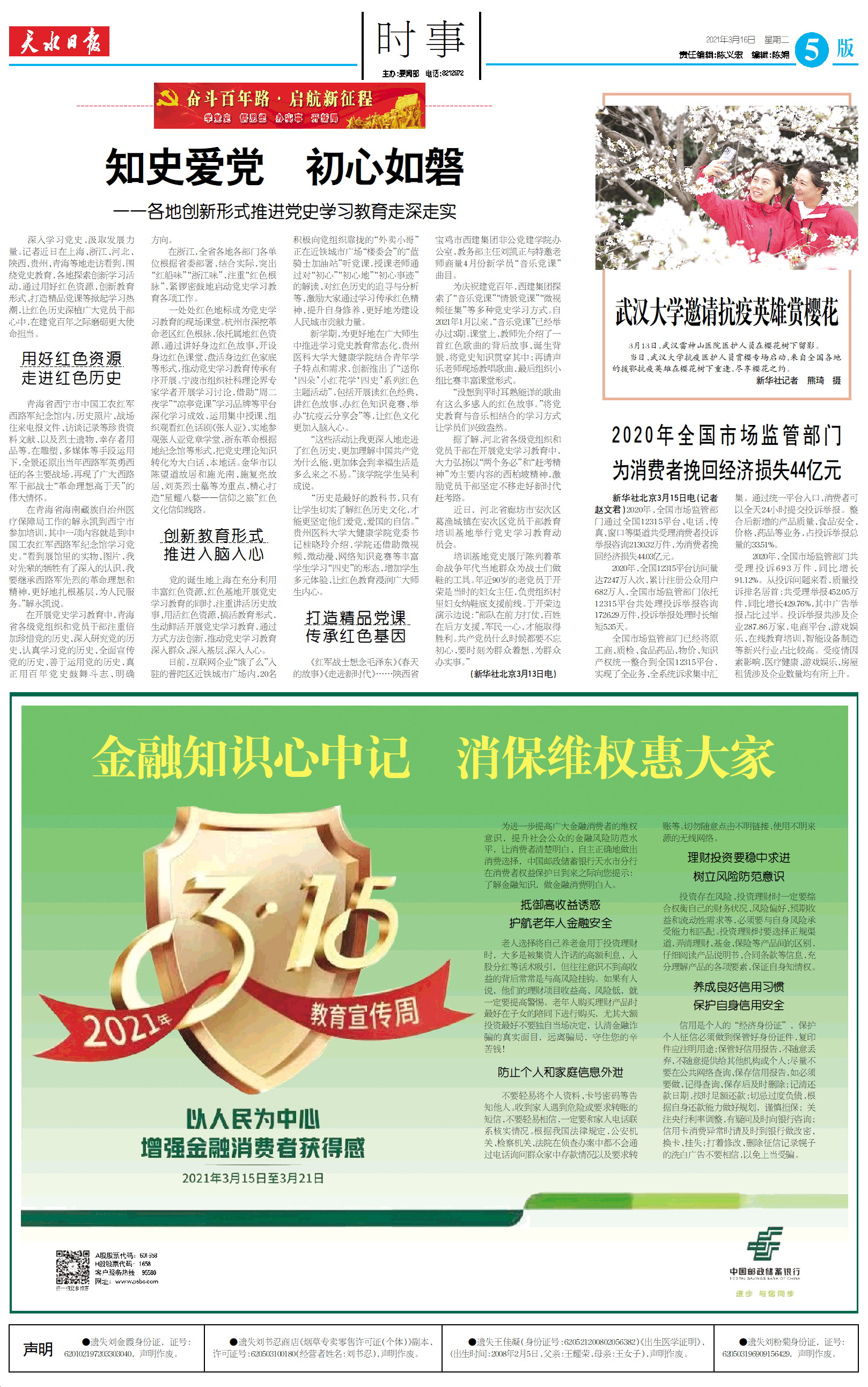 新闻 时间:2021年03月16日 来源:天水日报
