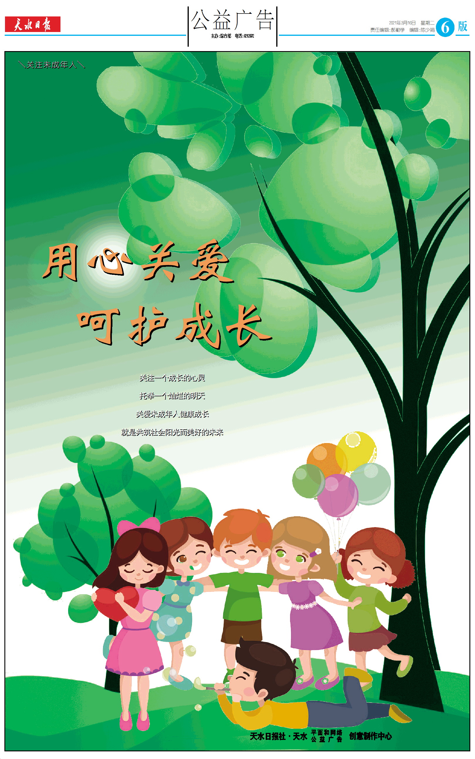 关注一个成长的心灵 托举一个灿烂的明天 关爱未成年人健康成长 就是共筑社会阳光而美好的未来