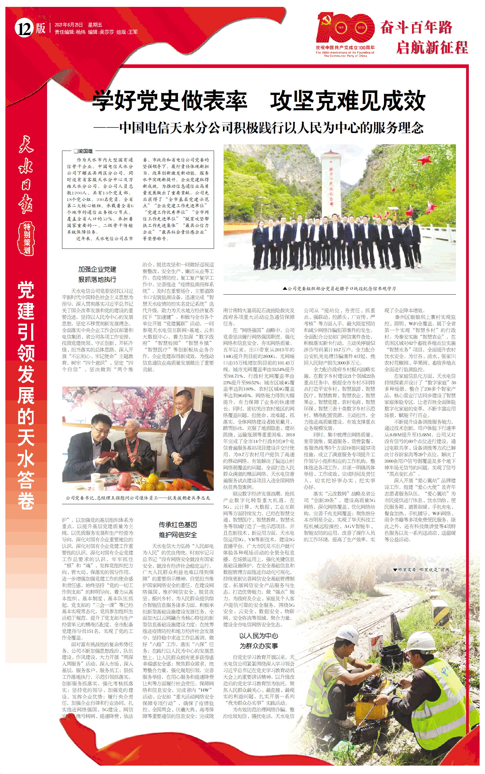 ——中国电信天水分公司积极践行以人民为中心的服务理念