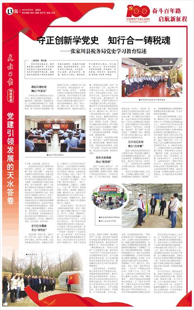 学习百年党史,汲取奋进力量。张家川县税务局广大干部从百年党史中汲取信仰的力量、思想的力量、精神的力量、实干的力量,以学习新成效为推动“十四五”发展迈好第一步、见到新气象凝聚磅礴伟力,奋力开创税务事业发展新局面,以优异成绩庆祝中国共产党成立100周年。