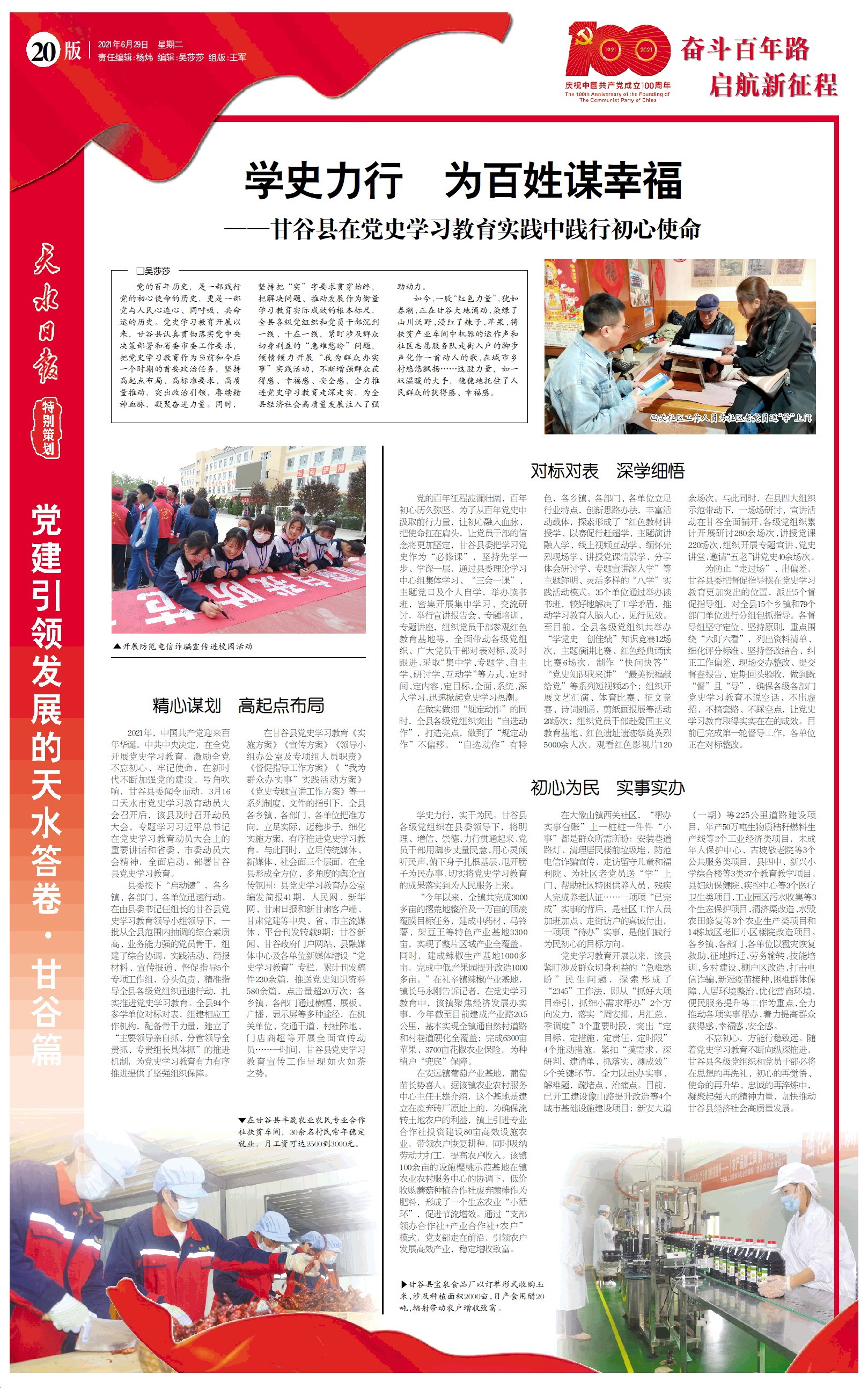 新闻 时间:2021年06月29日 来源:天水日报