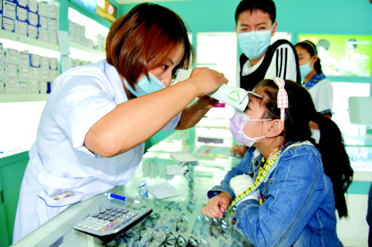 8月15日,在秦州区眼科医院,一小学生正接受眼睛检查。据医院工作人员介绍,开学临近,青少年配镜人数明显增多,每天达到七八十副。