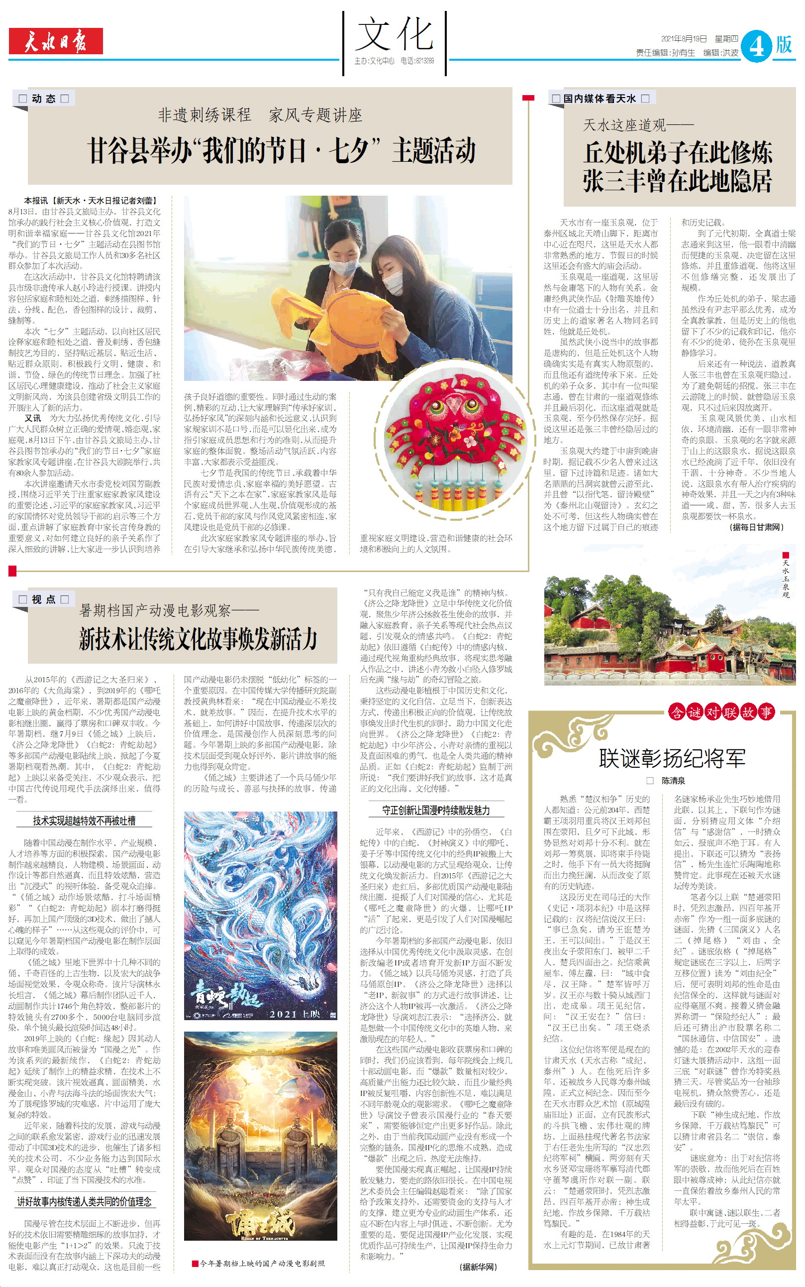 新闻 时间:2021年08月19日 来源:天水日报