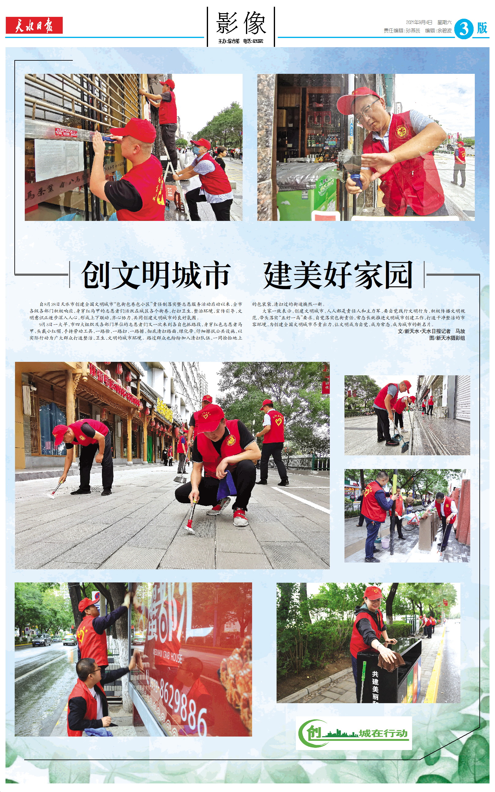 自8月28日天水市创建全国文明城市“包街包巷包小区”责任制落实暨志愿服务活动启动以来,全市各级各部门积极响应,身穿红马甲的志愿者们活跃在城区各个街巷,打扫卫生,整治环境,宣传引导,文明意识正逐步深入人心,形成上下联动、齐心协力,共同创建文明城市的良好氛围。