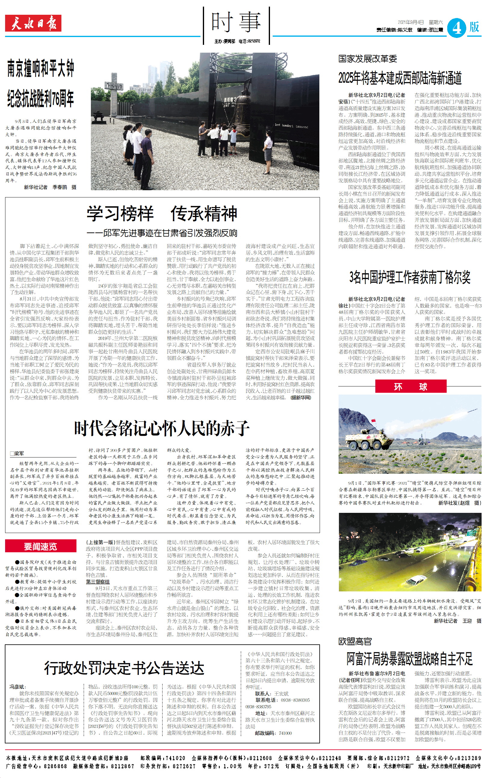 新闻 时间:2021年09月04日 来源:天水日报