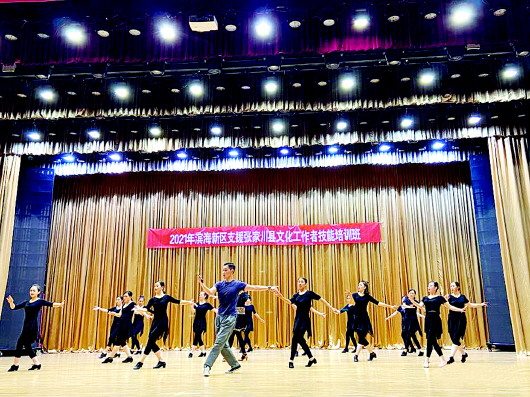 本报讯【新天水·天水日报记者刘蕾】由张家川县文旅局与天津市滨海新区文旅局联合举办的“2021年滨海新区支援张家川县文化工作者技能培训班”结课汇报展演,于近日在该县影视中心剧院举行。